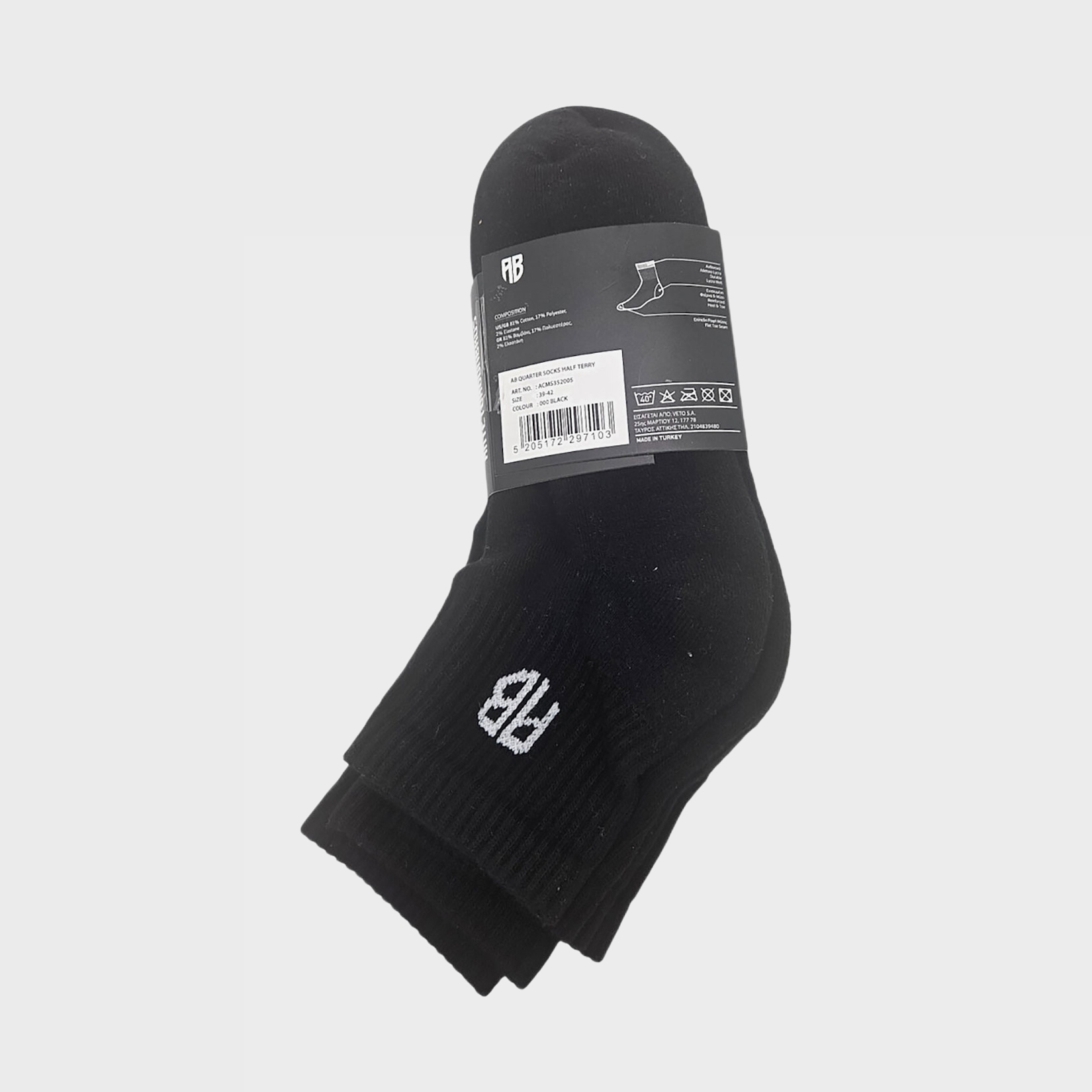 Οι κάλτσες AntetokounBros έρχονται σε ένα κομψό μαύρο χρώμα, ιδανικές για καθημερινή χρήση. Είναι φτιαγμένες από μαλακό ύφασμα που προσφέρει άνεση και ευκολία στη διάρκεια της ημέρας. Η unisex σχεδίαση τους τις καθιστά κατάλληλες για όλους, ανεξαρτήτως φύλου, δίνοντάς σου τη δυνατότητα να τις συνδυάσεις με διάφορα στυλ ντυσίματος.