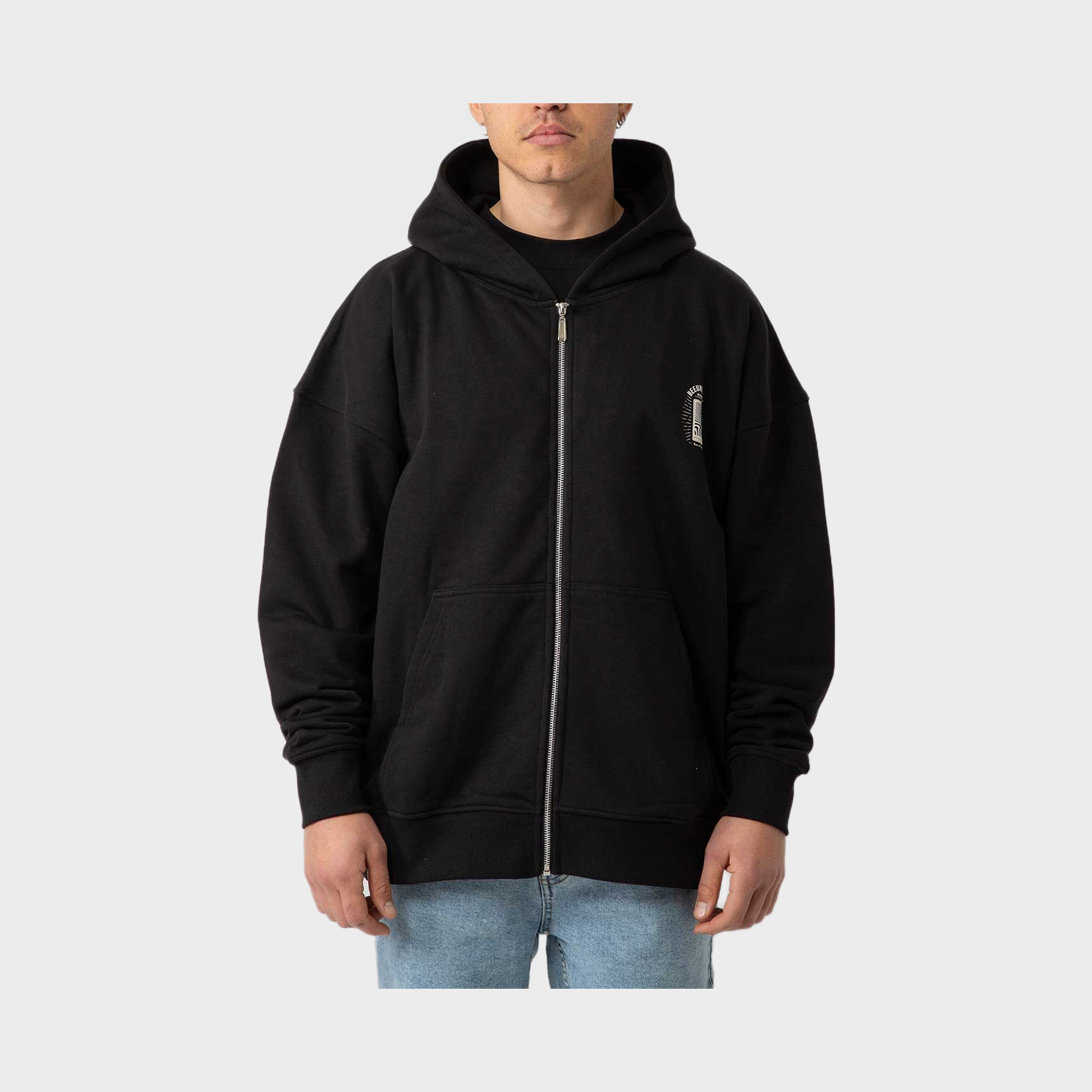 Φερμουάρ στην ψευδαίσθηση. Φούτερ με κουκούλα 420 γρ./τ.μ. με φερμουάρ σε όλο το μήκος, με έντονη γοτθική εκτύπωση στην πλάτη και διακριτικό λογότυπο μπροστά.