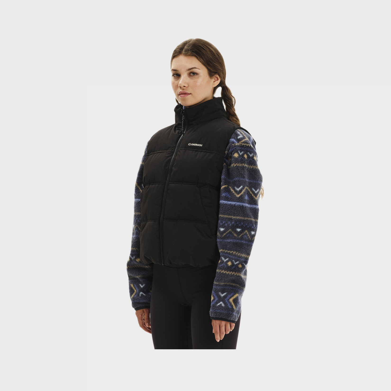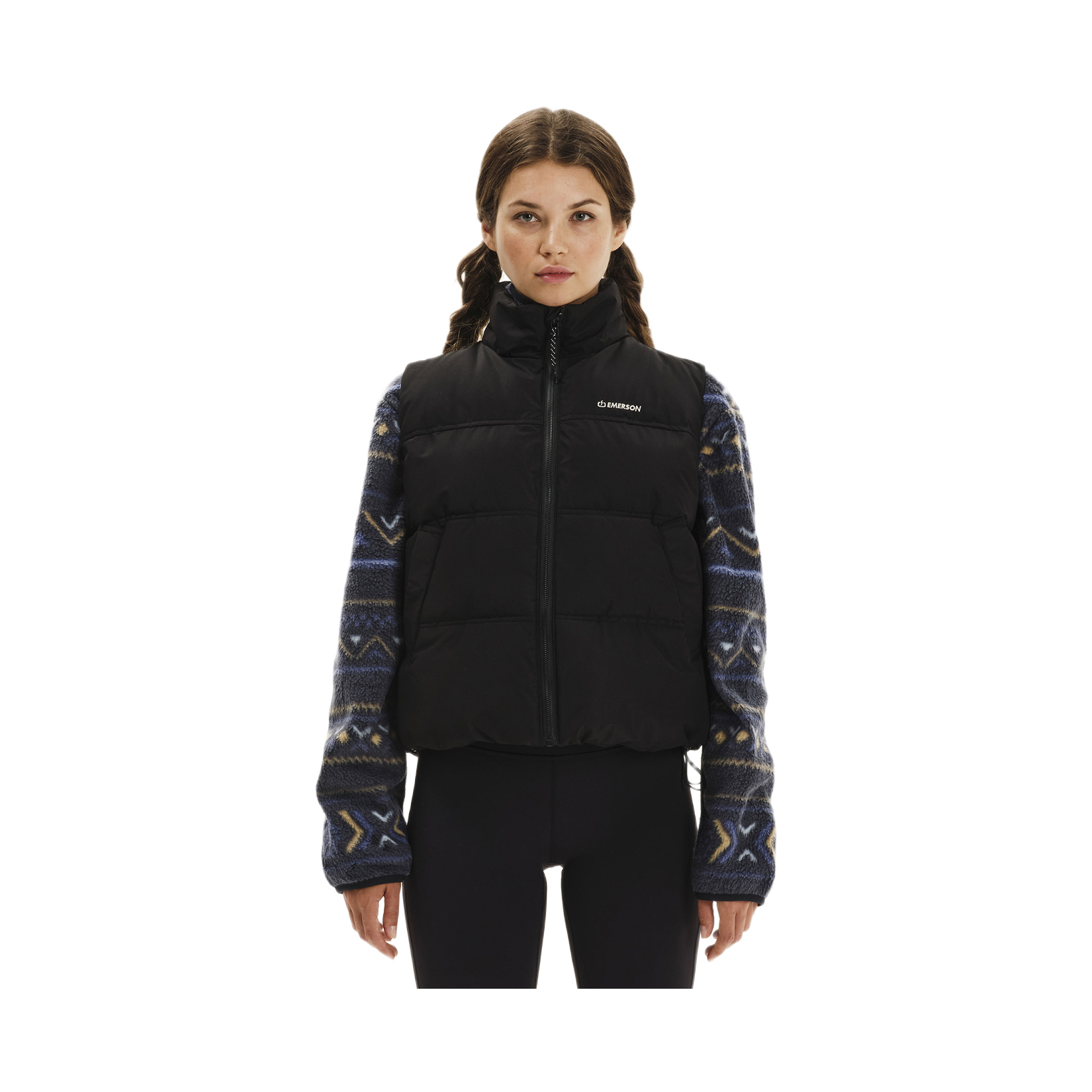 Το αμάνικο μπουφάν EMERSON puffer μέσου βάρους, είναι σχεδιασμένο για να νιώθεις άνετη όλη μέρα. Το γέμισμά του από ανακυκλωμένο συνθετικό πούπουλο SOFEELATE® προσφέρει υψηλή θερμομόνωση, παρόμοια με εκείνη του φυσικού πούπουλου, και το διαπνεόμενο, φιλικό προς το περιβάλλον ύφασμα, προσφέρει ζεστασιά και προστασία από τη βροχή και τον κρύο αέρα. Οι συνολικά 4 τσέπες του κρατούν τα καθημερινά σου αντικείμενα ασφαλή. Φόρεσέ το με το αγαπημένο σου φούτερ EMERSON για μια καθημερινή σπορ εμφάνιση.